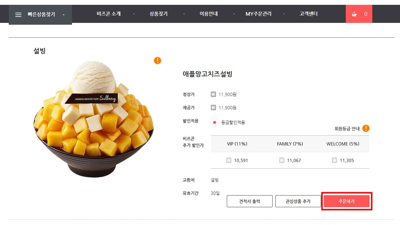 상대방에게 줄 선물을 골랐다면 주문하기를 통해 상대방에 대한 정보를 입력하고 선물하면 됩니다. 예전에 급하게 선물을 보내야 할 상황이 생겼는데, 휴대폰 배터리가 방전되는 바람에 비즈콘으로 카카오톡 선물하기를 했던 기억이 나네요.
